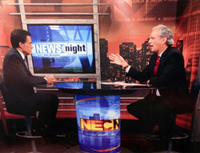 In the middle of all that, after having been a frequent guest, Jim Braude was hired by NECN to host a nightly show, originally, Talk of New England, for which he won an Emmy. He then co-hosted NewsNight with the legendary Chet Curtis, then his own show, Broadside, which he did until February of 2013.